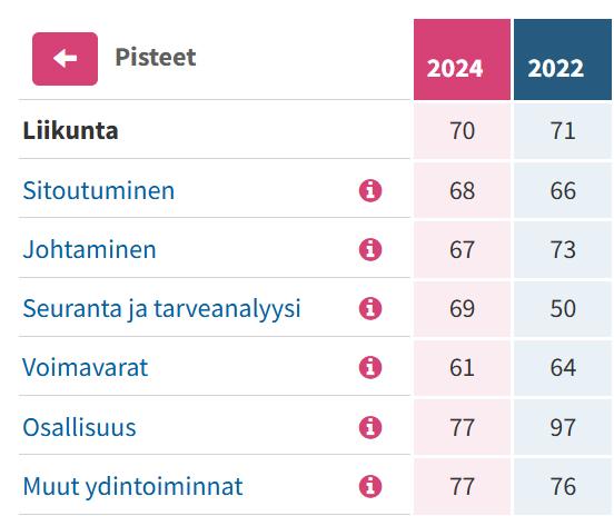 Tavoitteena on, että Keski-Suomen kunnissa, yrityksissä ja järjestöissä on liikkumisen edistämissuunnitelmat vuoteen 2030 mennessä ja liikuntavaikutusten arviointi sisältyy hanke-, toimenpide ja kaavasuunnitelmiin.
