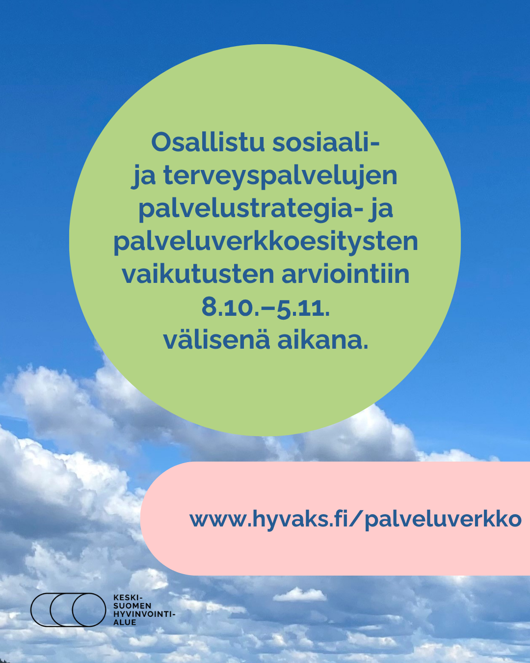 Keski-Suomen hyvinvointialueen sosiaali- ja terveyspalvelujen palvelustrategia- ja palveluverkkoesitykset on julkaistu ja niiden vaikutuksia voi arvioida 8.10.–5.11. välisenä aikana.