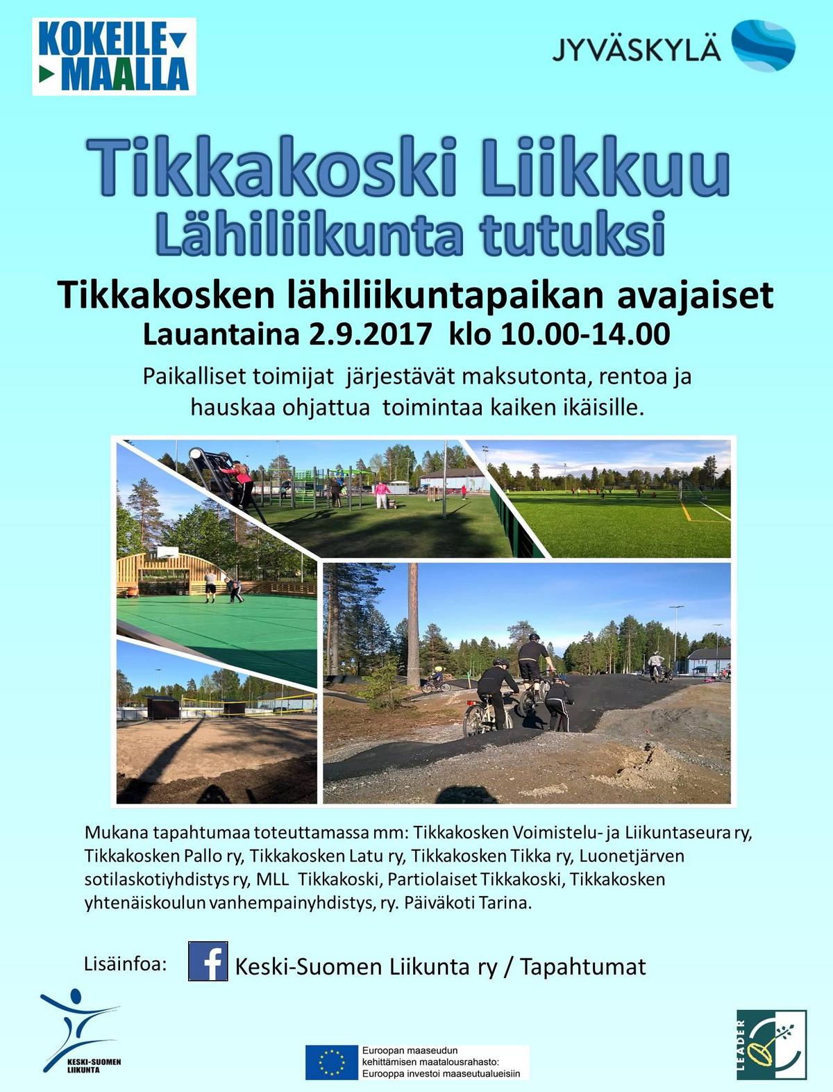 Tikkakoksella Juhlitaan Jyväskylän kaupungin uuden lähiliikuntapaikan avajaisia klo 10.00 - 14.00.
